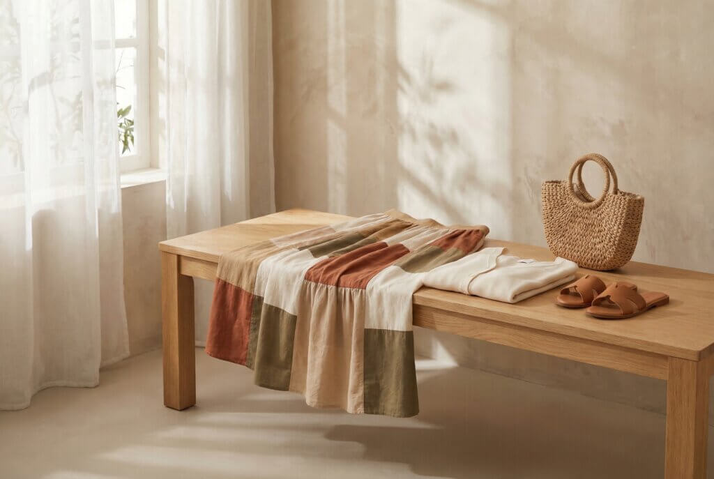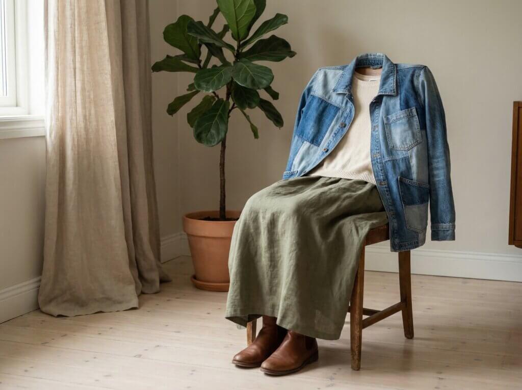 Not every upcycled fashion idea needs visible patchwork or dramatic reconstruction. Sometimes the most effective approach is curating thrifted pieces into a calm, repeatable wardrobe that feels elevated through color, texture, and shape.