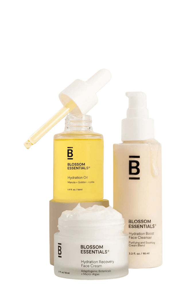 Start with the basics: a gentle cleanse, a moisturizer, and sunscreen in the morning. At night, cleanse and moisturize. Add hydration serum if you feel tight.